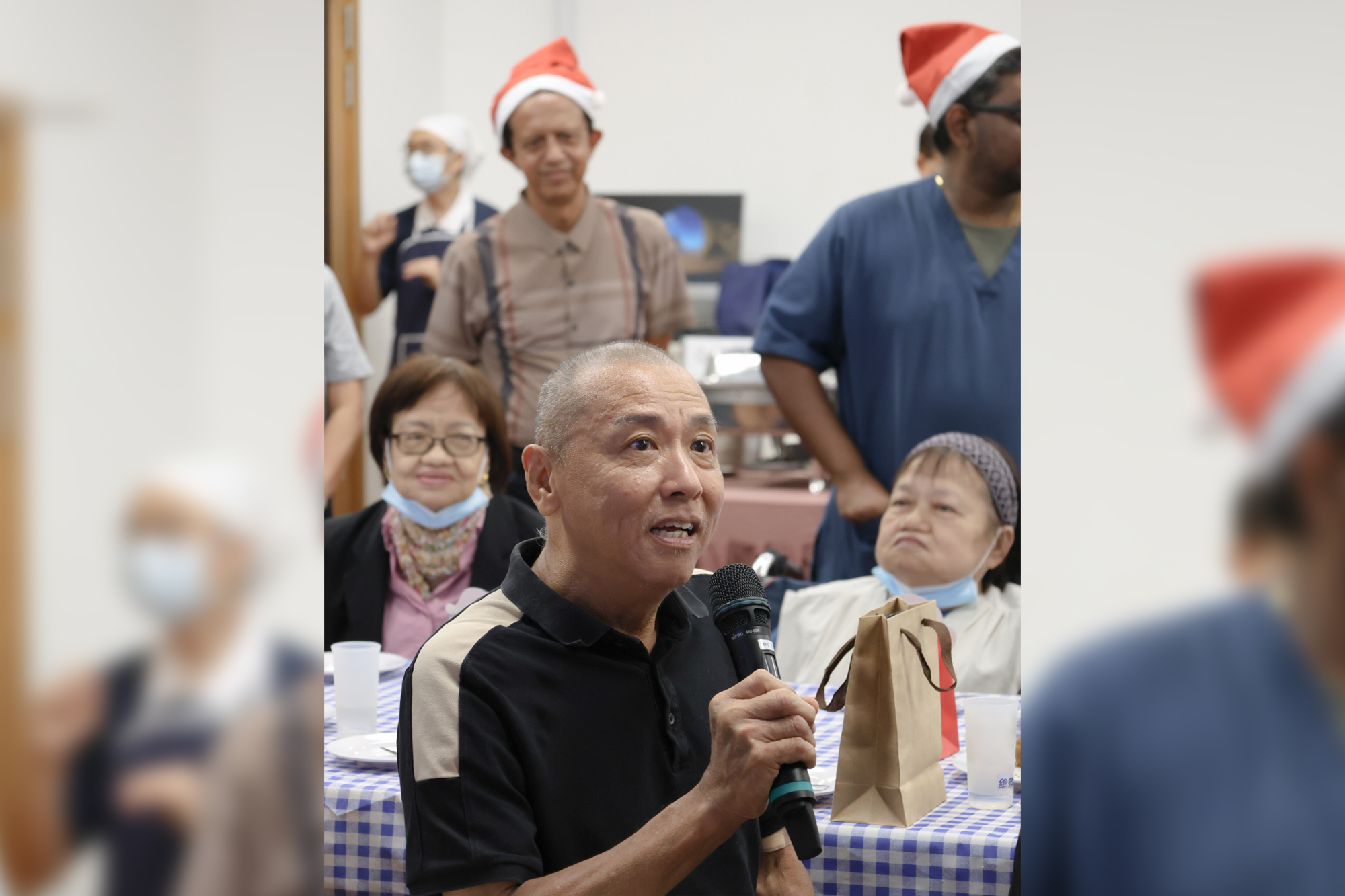 穆斯林肾友Eddie(上图拿麦克风者)也对医护人员、同仁与志工的点滴关爱与鼓励表达挚诚感谢。这毫无修饰的真情表达,让身旁一路相伴的护士瞬间湿了眼眶。